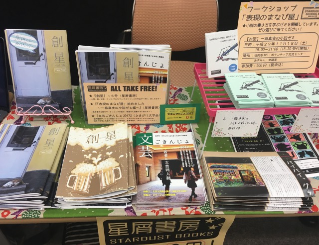 先月の「第3回 文学フリマ福岡」に来場されて「創星」 を受け取った方が何名か訪ねてくるなど、 様々な催し物に参加することで、 それらが星屑書房の活動の一つの線として織り成し、 繋がっていっているのではないかと、実感した次第です。