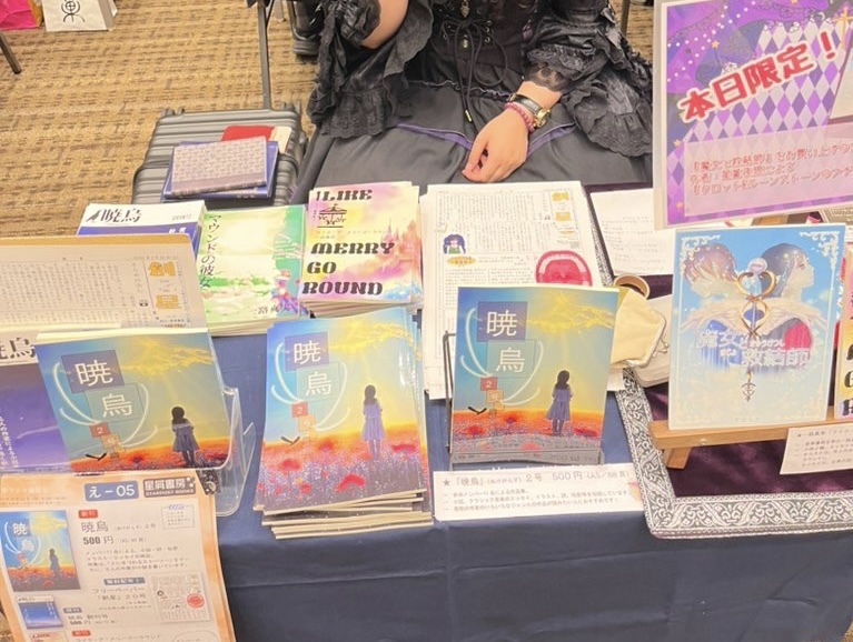 今回は、『暁烏』2号と創刊号、一路の個人誌とメンバーの星菫夜想さんの個人誌を出品しました。