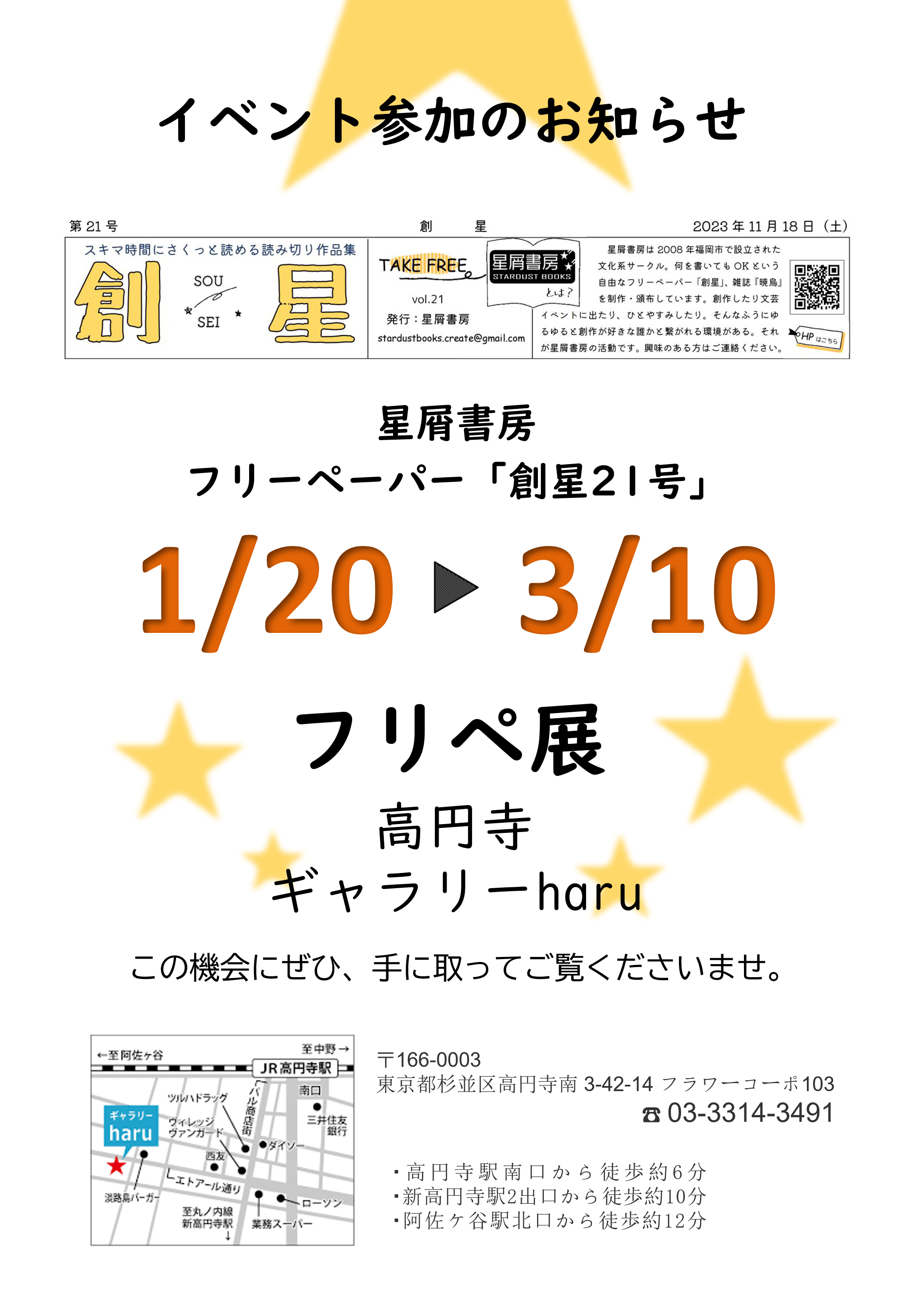 なので、今後もフリーペーパーの配布機会があったら、創星を配って星屑書房のことを知ってもらいたいな〜と思っています。